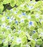 観察すると中心部から外側に向けた白から青へのグラデーション。 花びらが密に重なった青い手毬がいくつも葉の中に浮いている。 もともと雑木の庭に映える花の色は紫か青と考えている自分にとって,資福寺の青いアジサイはド・ストライク。